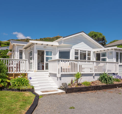 This beautifully maintained character residence has been thoughtfully enhanced to deliver contemporary comfort without compromising its original charm. Light-filled and finished in soft, neutral hues, the open-plan kitchen, dining and living areas are oriented to maximise the sweeping sea outlook and stunning views toward Kapiti Island. Ranch sliders extend the living spaces onto a generous wrap-around deck, creating a seamless indoor-outdoor flow ideal for long summer days, relaxed evenings and entertaining against a coastal backdrop.
